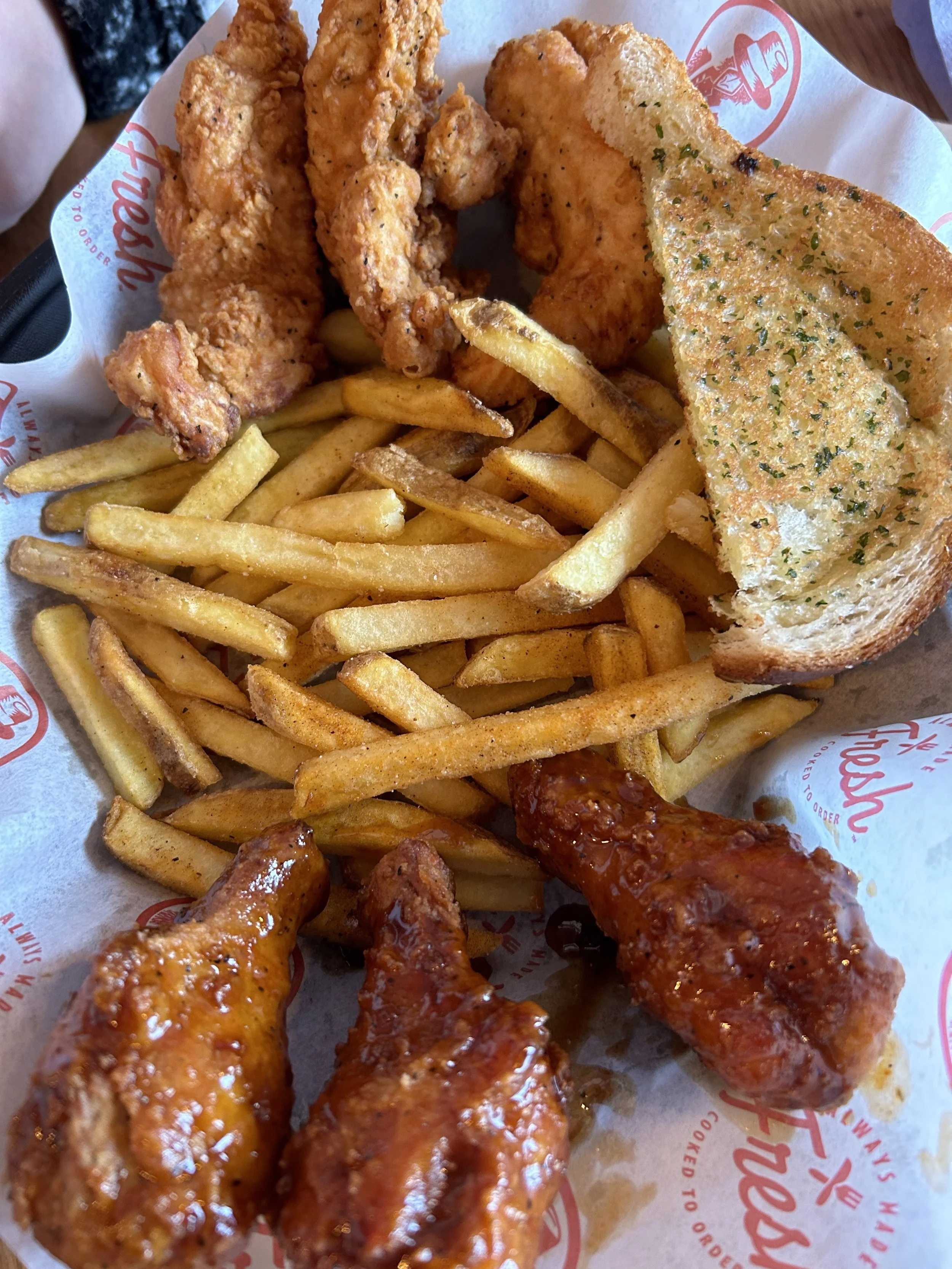 Chick’s (3 Tenders) Meal with added Korean BBQ wings and Texas Toast