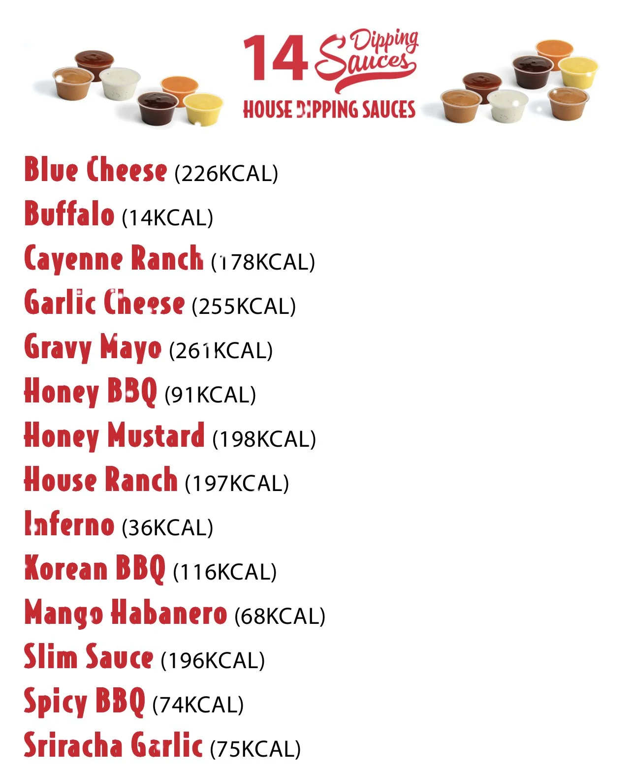 Slim Chickens offer a whopping 14 dipping sauces which can be seen below: